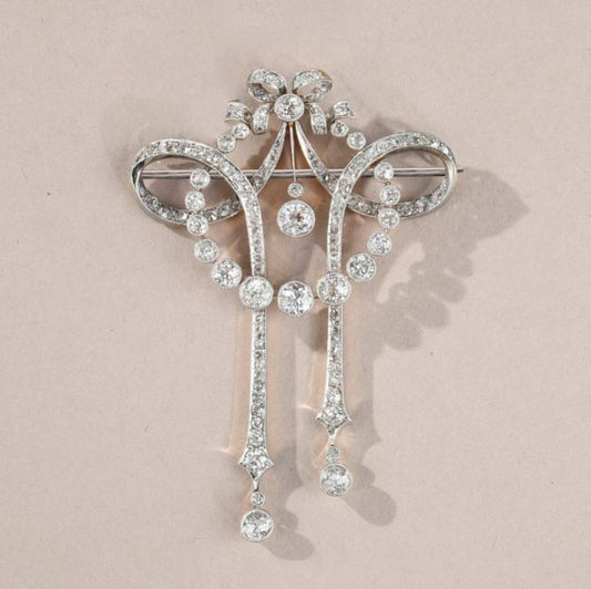 Vintage Milgrain Round Cut White Sapphire Brooch