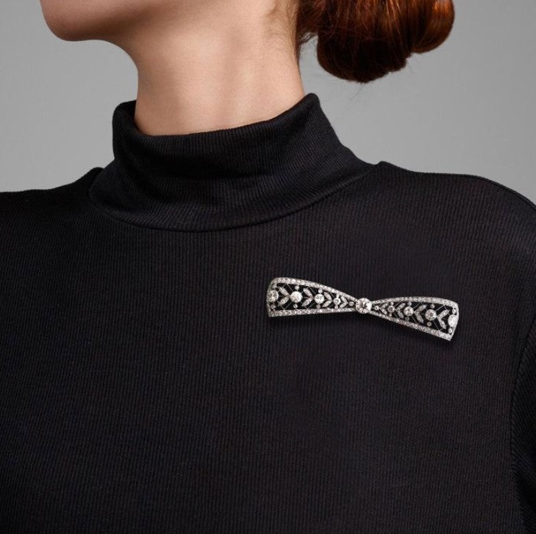 Our Milgrain Round Cut White Sapphire Bow Brooch